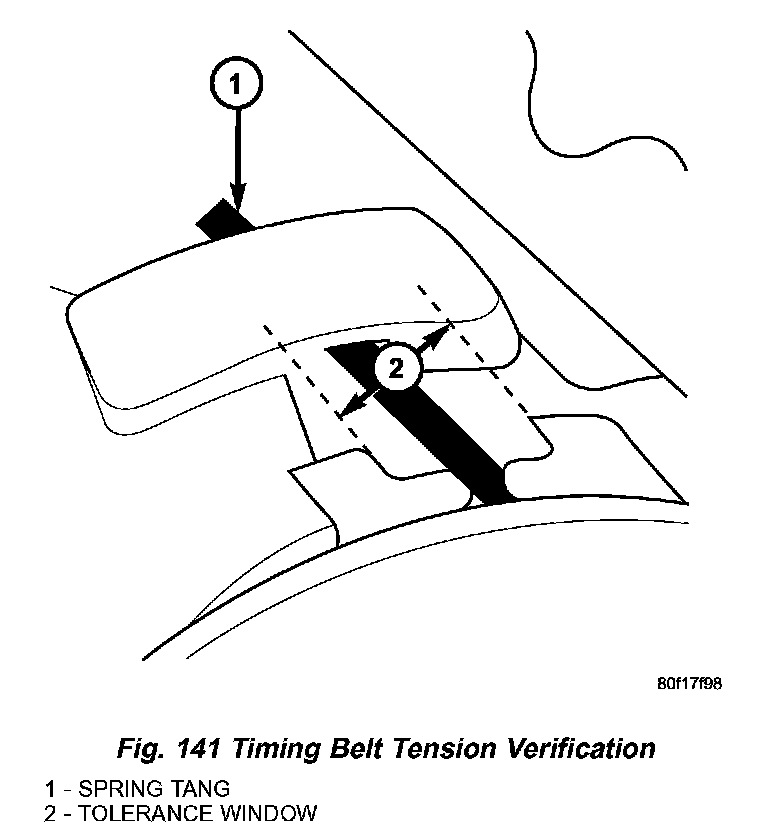 8. Check if the spring tang is within the tolerance window (Fig. 141). If the spring tang is within the tolerance window, the installation process is complete and nothing further is required. If the spring tang is not within the tolerance window, repeat Steps 5 through 7.
