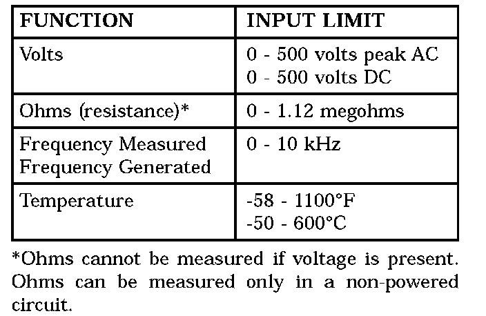 WARNING: EXCEEDING THE LIMITS OF THE DRBIII MULTIMETER IS DANGEROUS. IT CAN EXPOSE YOU TO SERIOUS OR POSSIBLY FATAL INJURY. CAREFULLY READ AND UNDERSTAND THE CAUTIONS AND THE SPECIFICATION LIMITS.