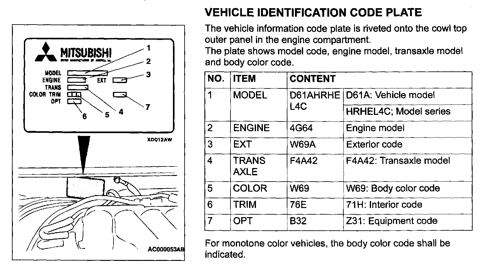 Vehicle Identification Code Plate: