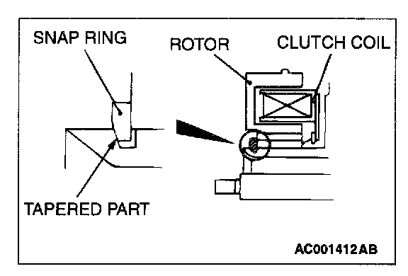 Install the snap ring so that the tapered surface is to the outside.