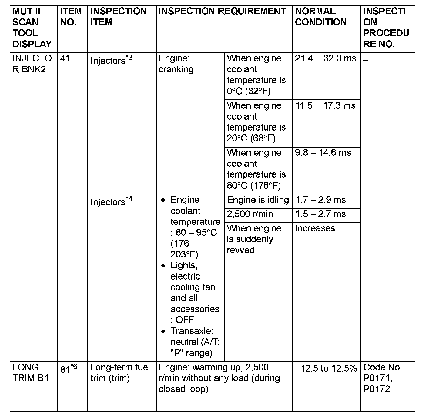 - *4: In a new vehicle [driven approximately 500 km (311 mile) or less], the injector drive time is sometimes 10% longer than the standard time.