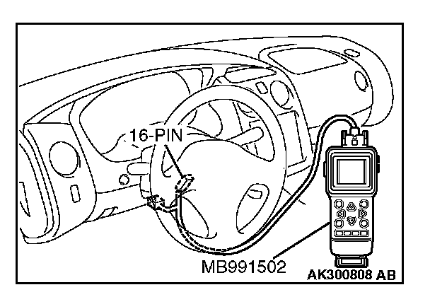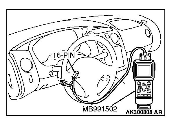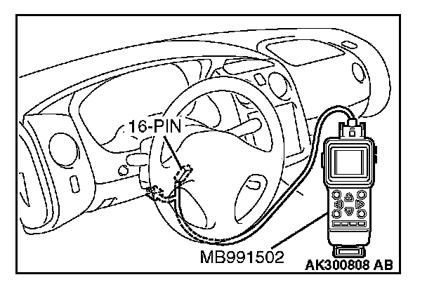 CAUTION: To prevent damage to scan tool MB991502, always turn the ignition switch to the "LOCK" (OFF) position before connecting or disconnecting scan tool MB991502.