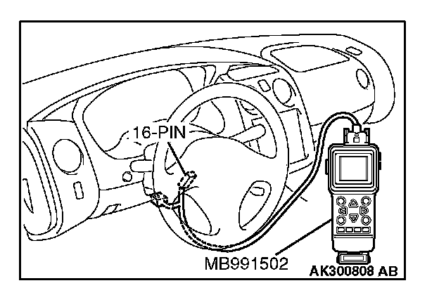 CAUTION: To prevent damage to scan tool MB991502, always turn the ignition switch to the "LOCK" (OFF) position before connecting or disconnecting scan tool MB991502.