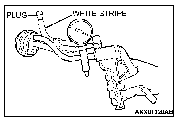 1. Disconnect the vacuum hose (white stripe) from the vacuum control valve and connect the hand vacuum pump to the vacuum control valve.