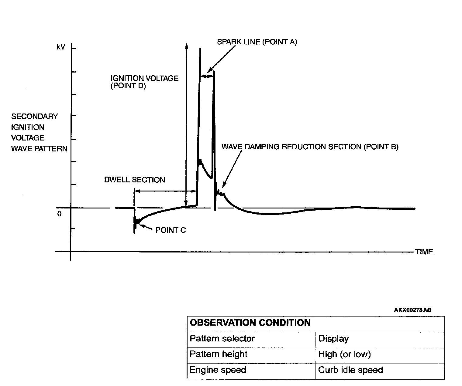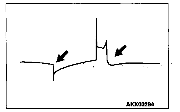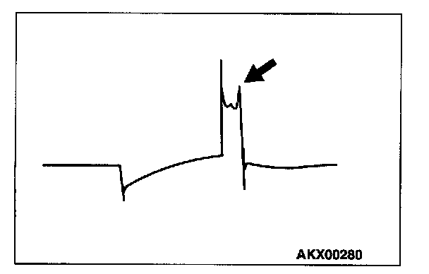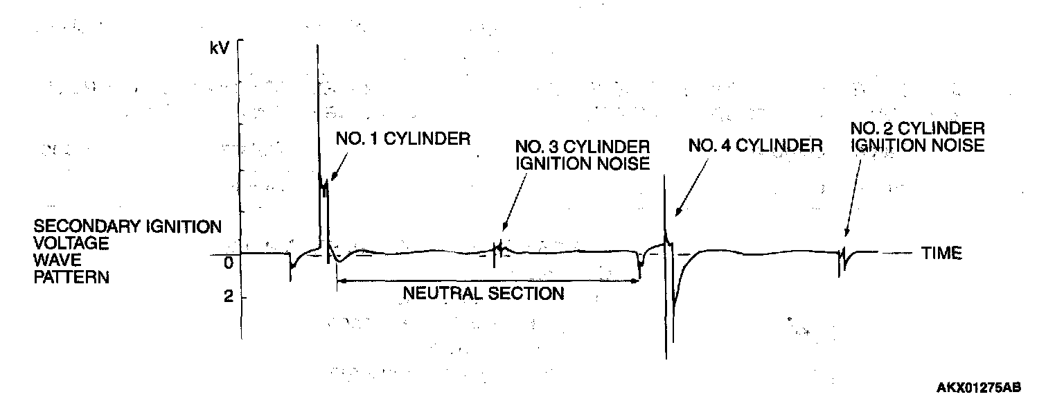 NOTE: Because of the two-cylinder simultaneous ignition system, the waves for two cylinders in each group appear during wave observation. However, wave observation is carried out for the cylinder (Number 1 or 3) with the spark plug cable which has been clamped by the secondary pickup.