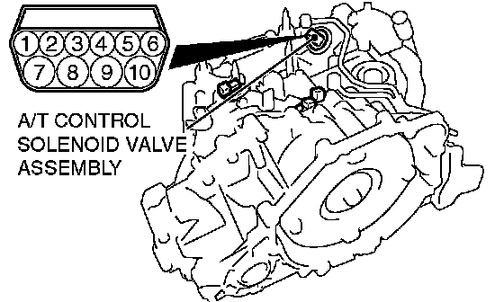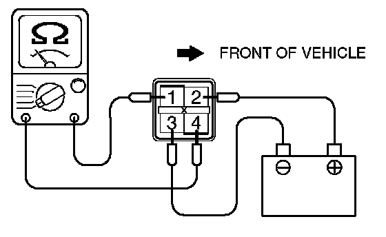 3. Check for continuity between A/T control relay terminals 1 and 4 when the jumper wires are connected to and disconnected from the battery.