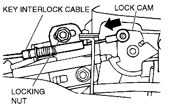 4 Loosen the locking nut of the key interlock cable.
