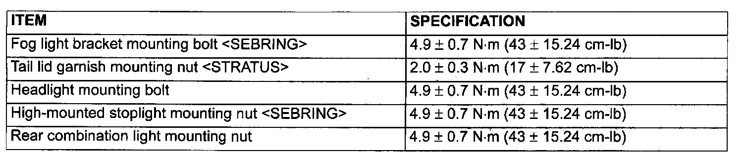 Fastener Tightening Specifications: