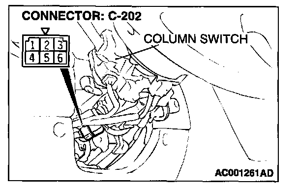 connector C-202 without removing the ignition switch and steering lock cylinder. Then check the continuity.