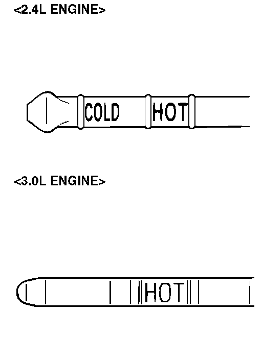 12. Drive the vehicle until the transmission fluid temperature rises to the normal operating temperature [70 - 80°C (158 - 176°F)], and then check the transmission fluid level again. The transmission fluid level must be at the "HOT" mark.