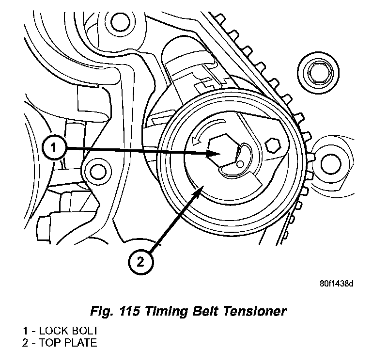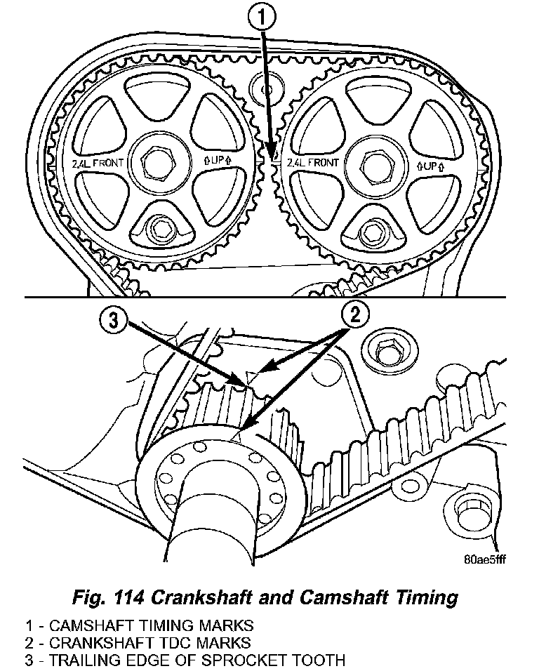 CAUTION: When aligning crankshaft and camshaft timing marks always rotate engine from crankshaft. Camshaft should not be rotated after timing belt is removed. Damage to valve components may occur. Always align timing marks before removing timing belt.