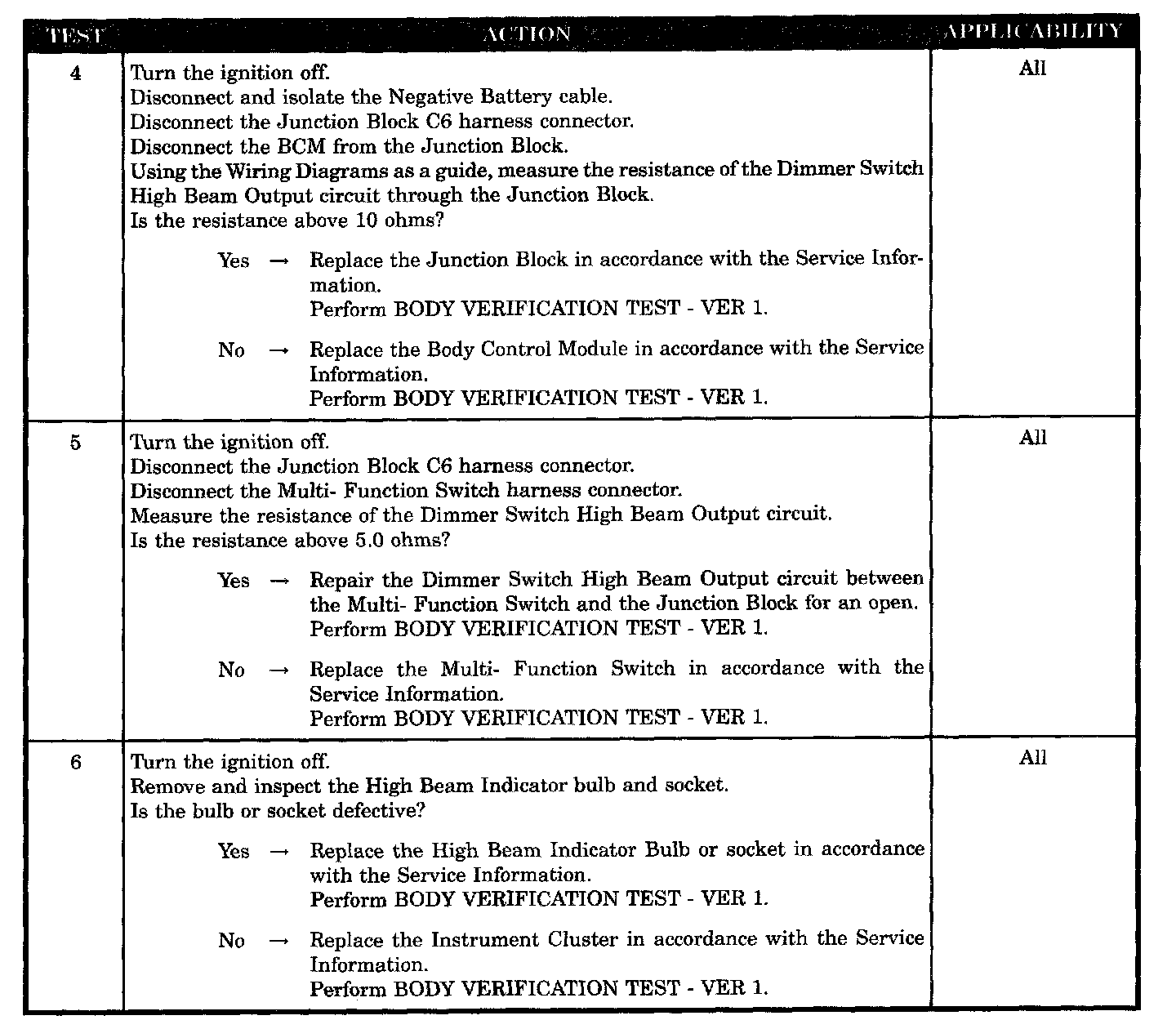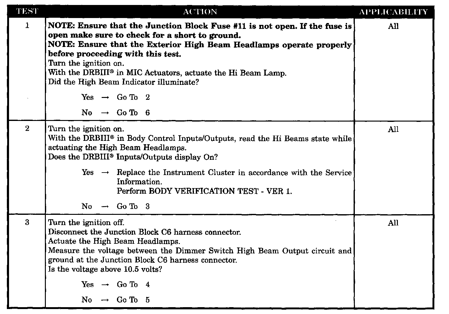 HIGH BEAM INDICATOR INOPERATIVE