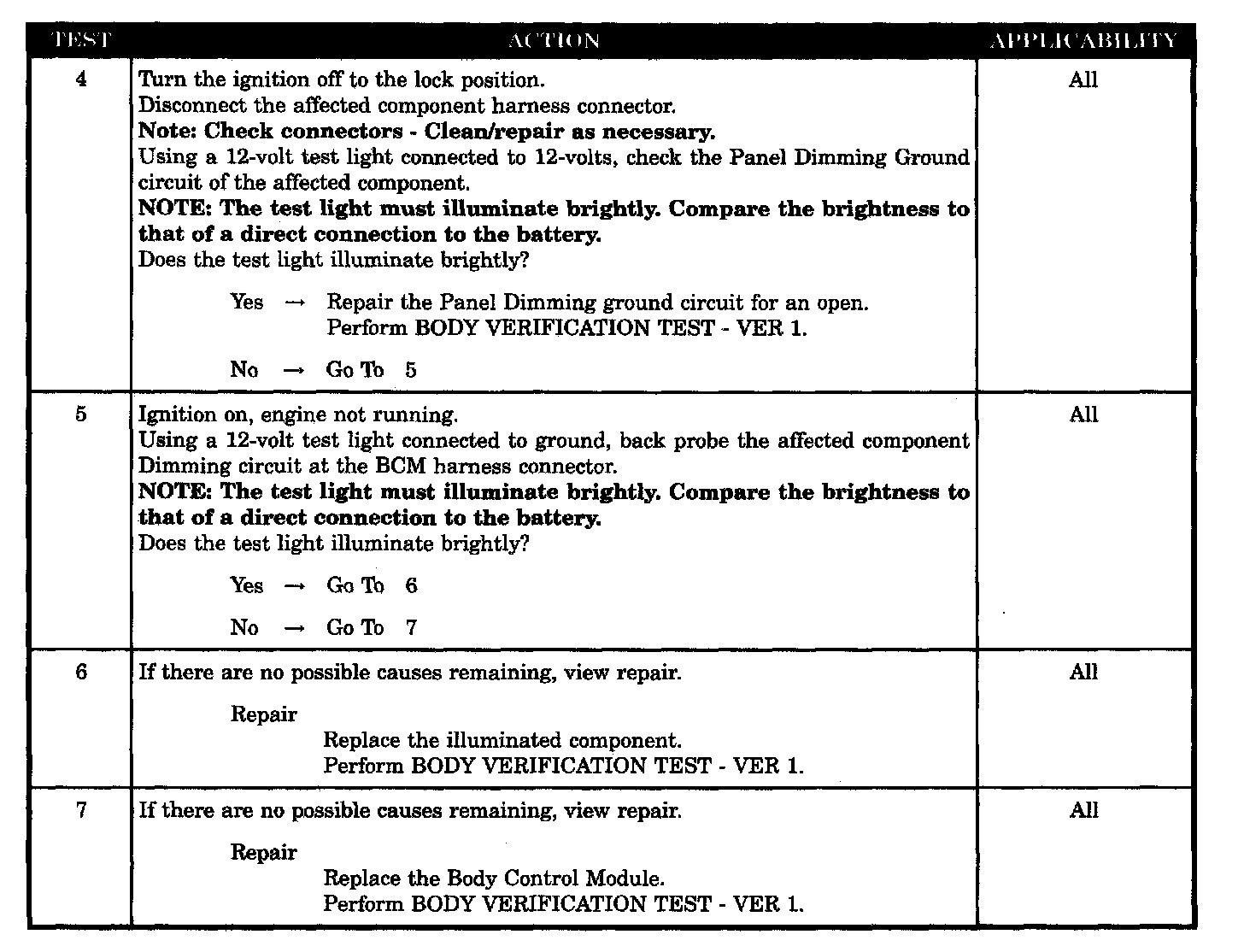 I/P ILLUMINATION LAMPS NOT WORKING PROPERLY