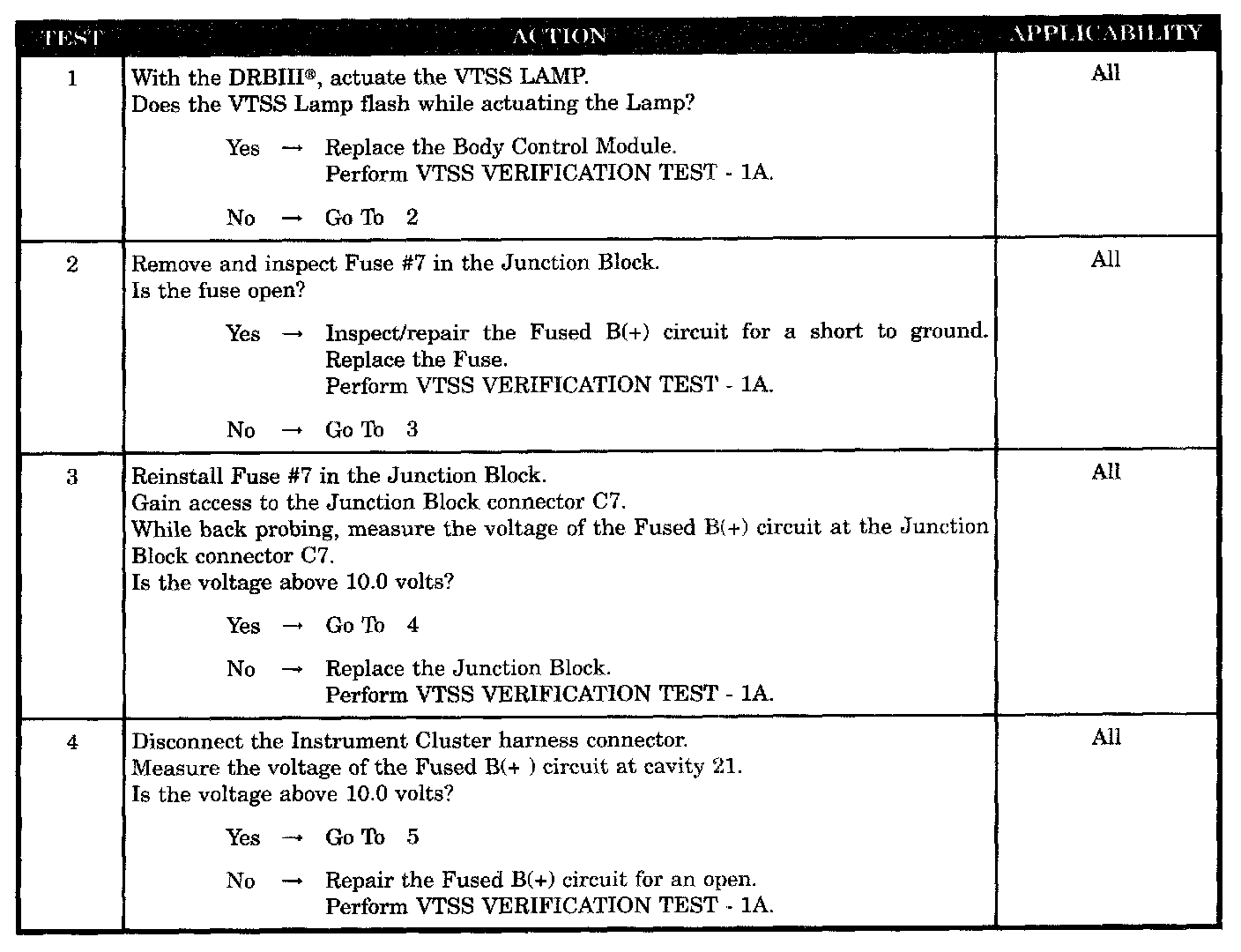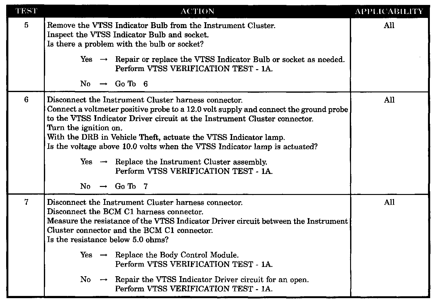 - VTSS indicator lamp test