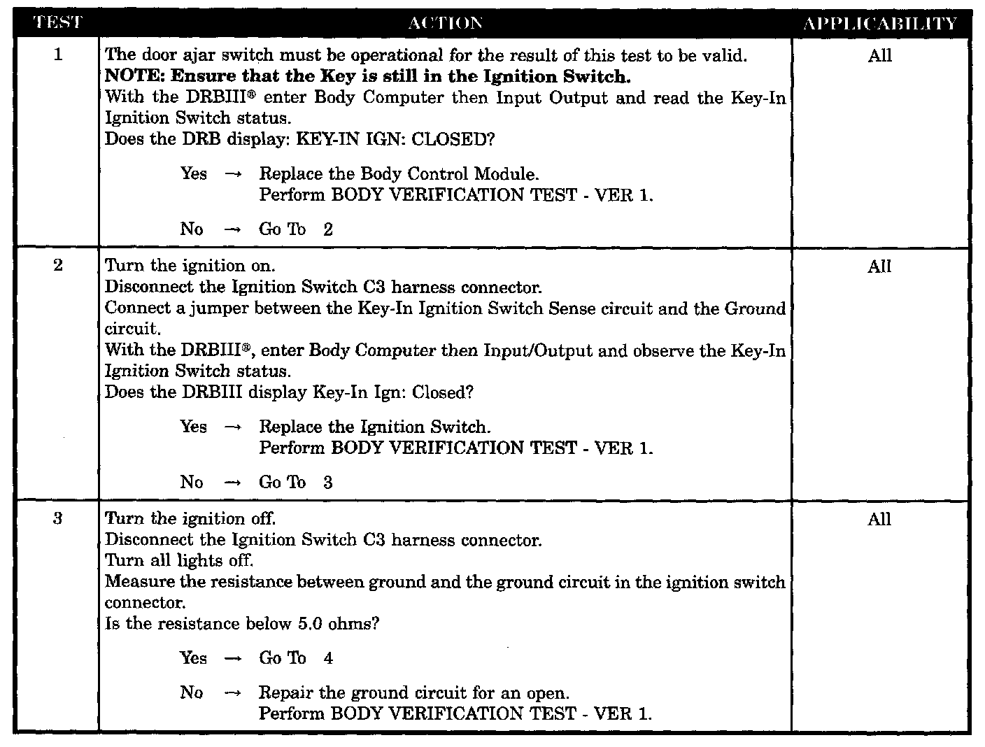 CHIME INOPERATIVE WITH KEY-IN IGNITION AND DRIVER DOOR OPEN