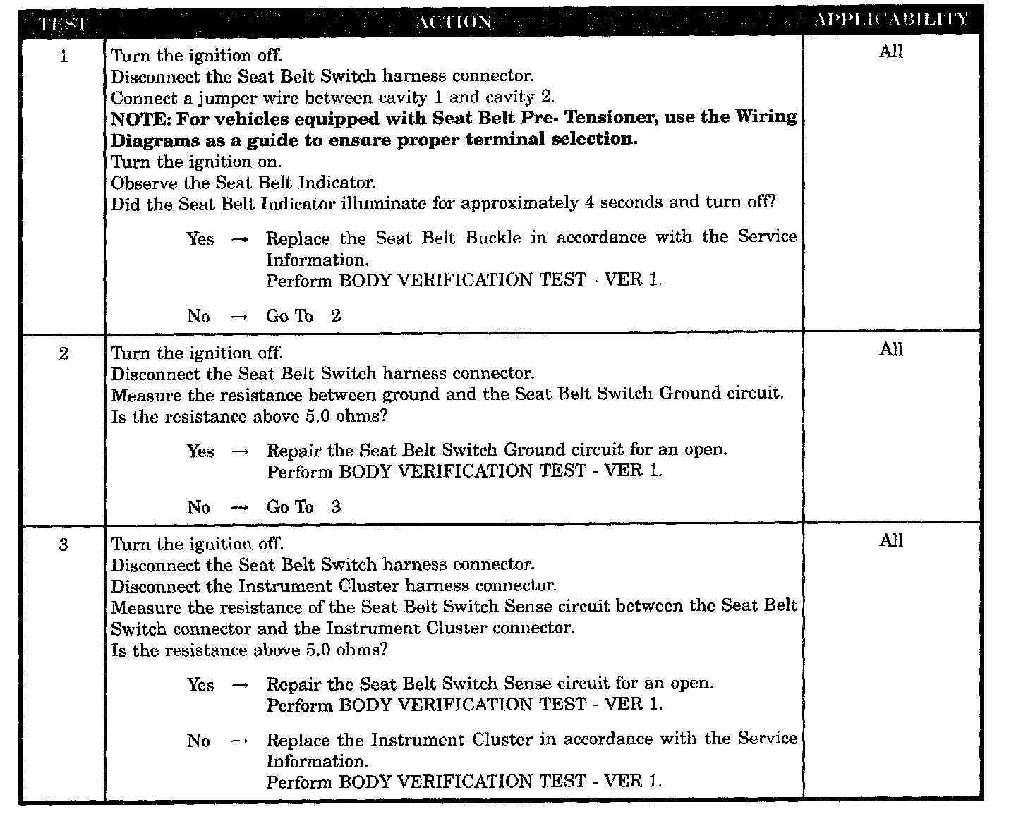 Seat belt switch ground circuit open