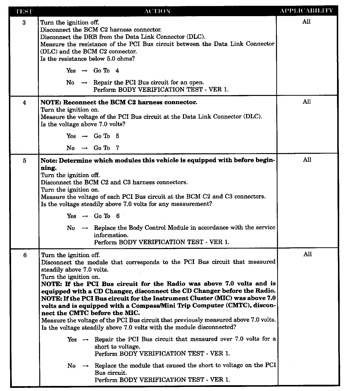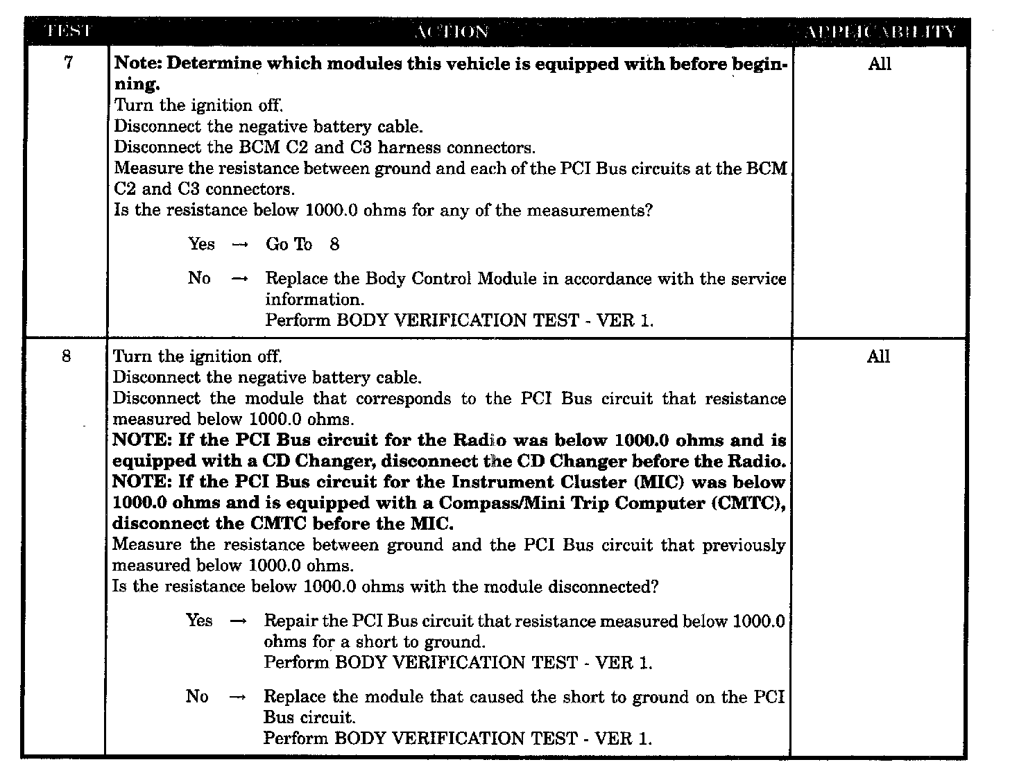 - Low resistance to ground on the PCI BUS circuits at the BCM connectors