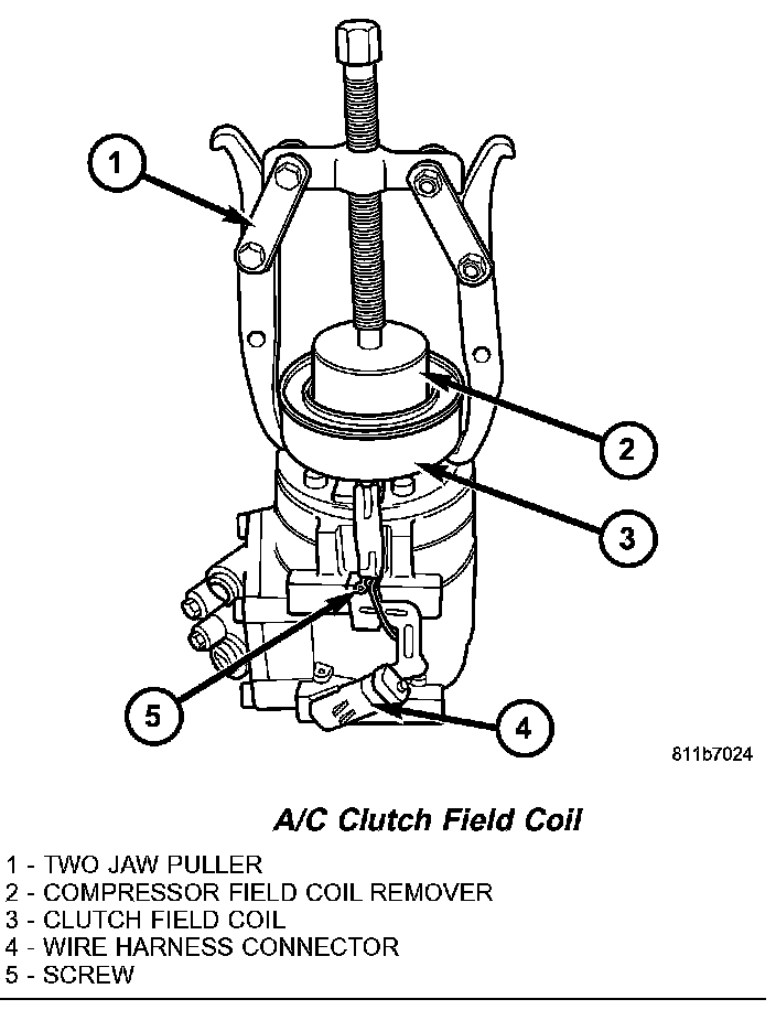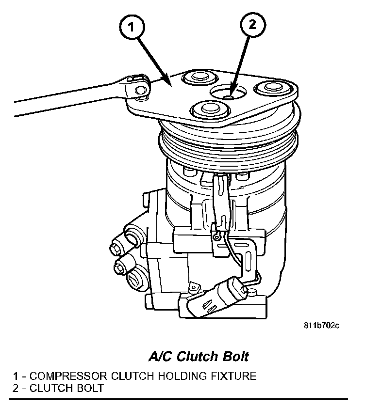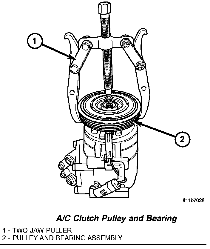 REMOVALNOTE: The A/C compressor clutch can be serviced in the vehicle. The refrigerant system can remain fully-charged during compressor clutch, pulley and bearing assembly, or coil replacement.