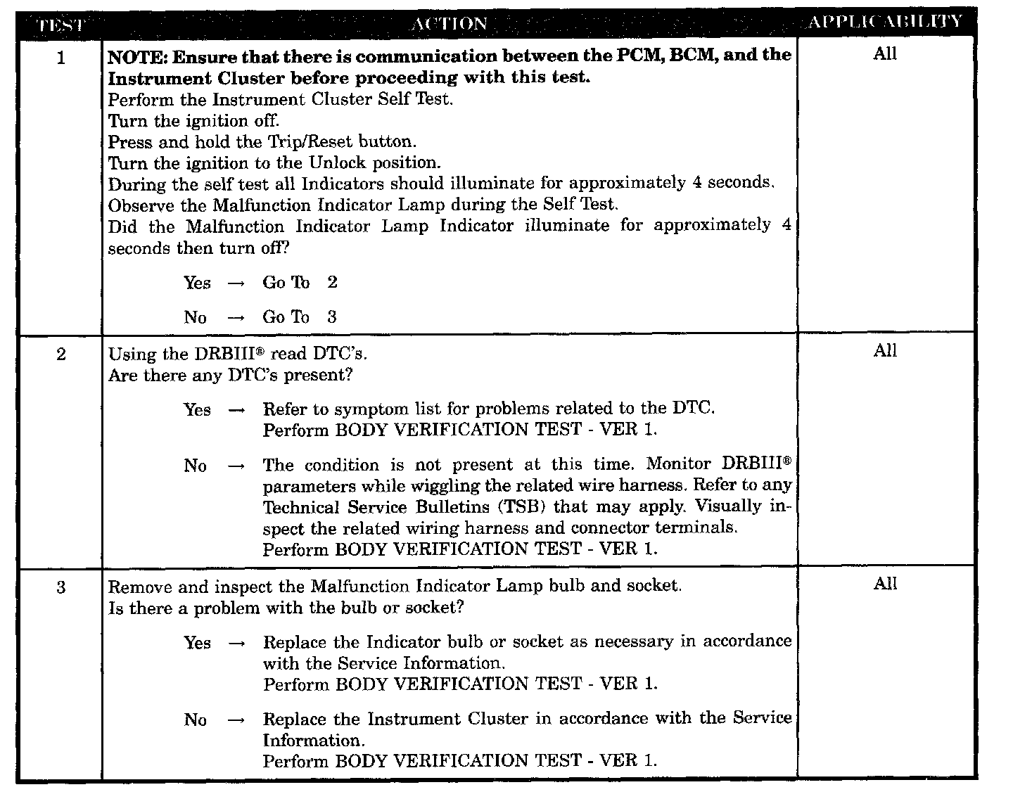 MALFUNCTION INDICATOR LAMP NOT OPERATING PROPERLY