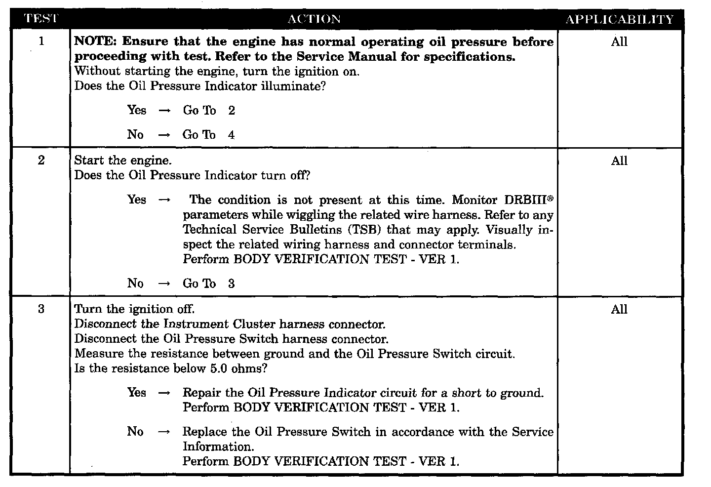 OIL PRESSURE INDICATOR NOT OPERATING PROPERLY