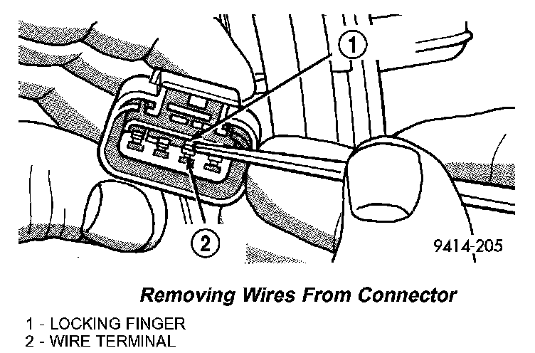3. Using a small screwdriver lift locking finger away from terminal and push level sensor and ground terminals out of connector.