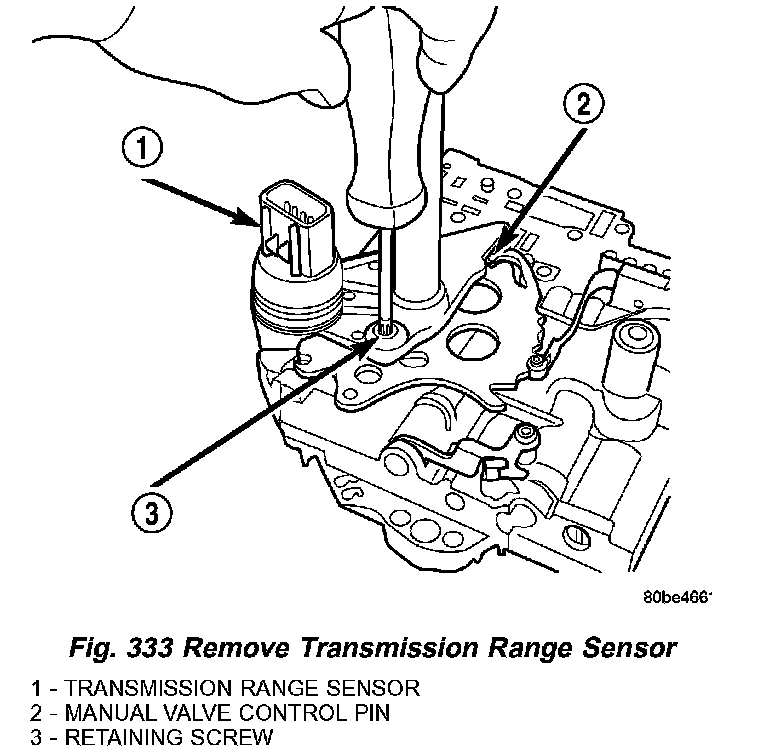 2. Remove transmission range sensor retaining screw and remove sensor from valve body (Fig. 333).