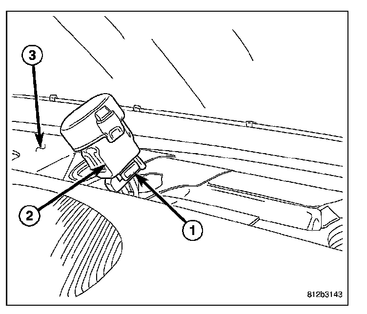 4. Gently push the sun sensor assembly into the instrument panel until the sensor snap clip retainers (3) are securely engaged.