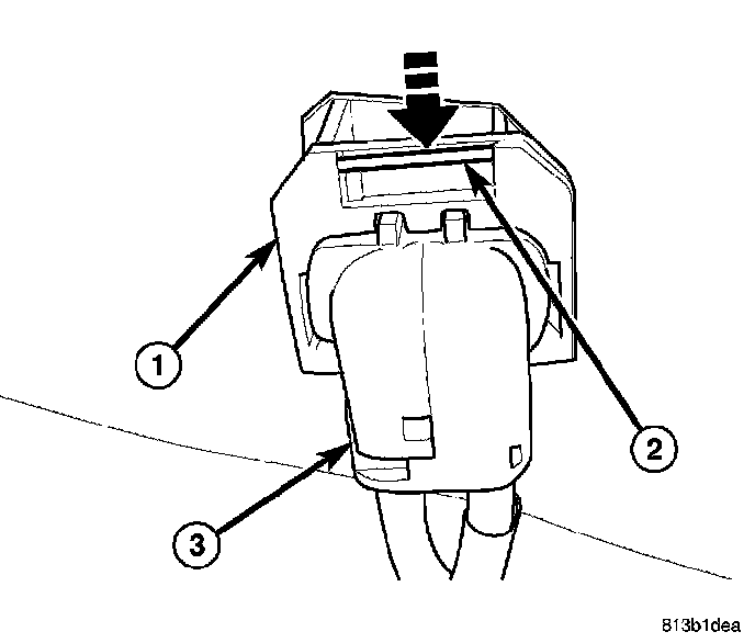 NOTE: To release sensor connector from body wiring harness connector (1) in following step, move retaining clip (2) as indicated here, then pull sensor connector (3) outward.