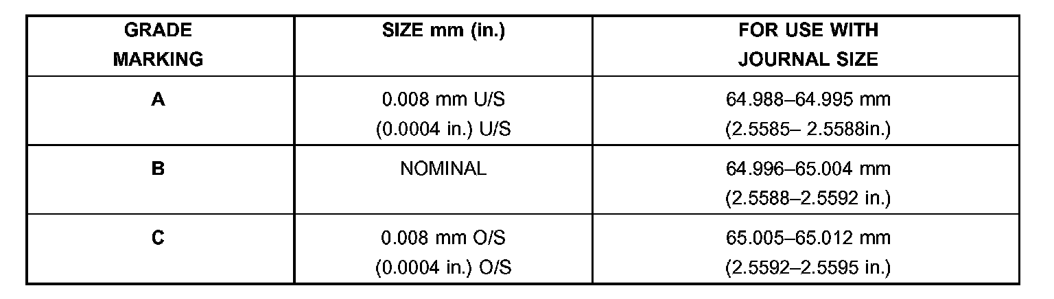 Main Bearing Journal Diameter 64.988 - 65.012 mm (2.5585 - 2.5595 inch)