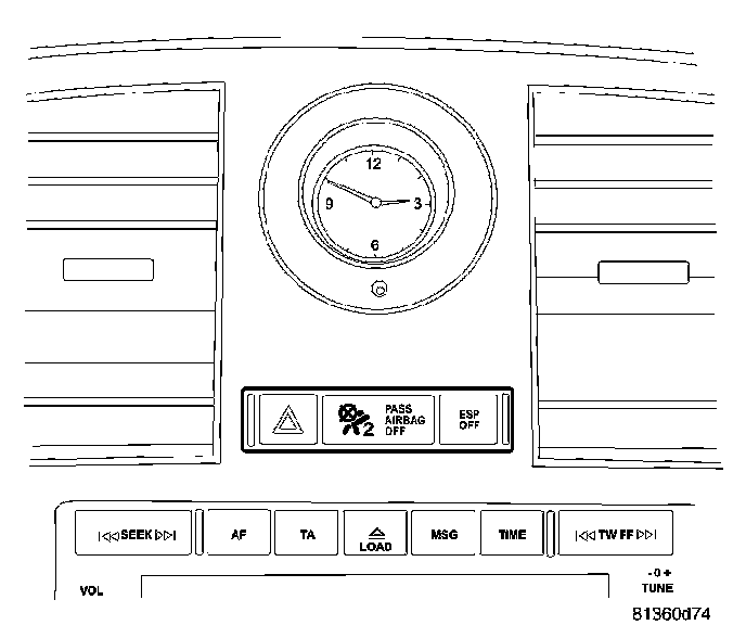 The ESP Off Switch is located in the Instrument Panel Switch Pod in the center of the instrument panel. The ESP Off switch turns the Electronic Stability Program off whenever the switch is depressed. Depressing the switch a second time turns the ESP back on. The switch resets itself each time the ignition is cycled.
