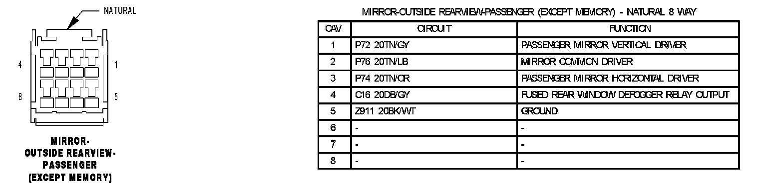 Mirror-Outside Rearview-Passenger (Except Memory):