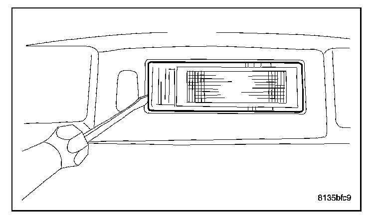 2. Using a trim stick (special tool #C-4755) or equivalent, gently pry out the edge of the reading lamp lens. There will be a small slot on the side of the lens that should be used. Looking at the unit it will be on the left side of the lens.