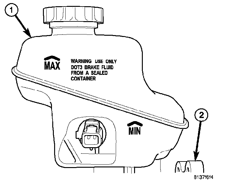 NOTE: During the brake bleeding procedure, be sure the brake fluid level remains close to the FULL level in the master cylinder fluid reservoir. Check the fluid level periodically during the bleeding procedure and add Mopar� DOT 3 brake fluid as required.