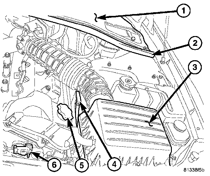 Checking the oil while the vehicle is on level ground will improve the accuracy of the oil level reading. Add oil in the oil fill (5) only when the level is at or below the ADD mark.