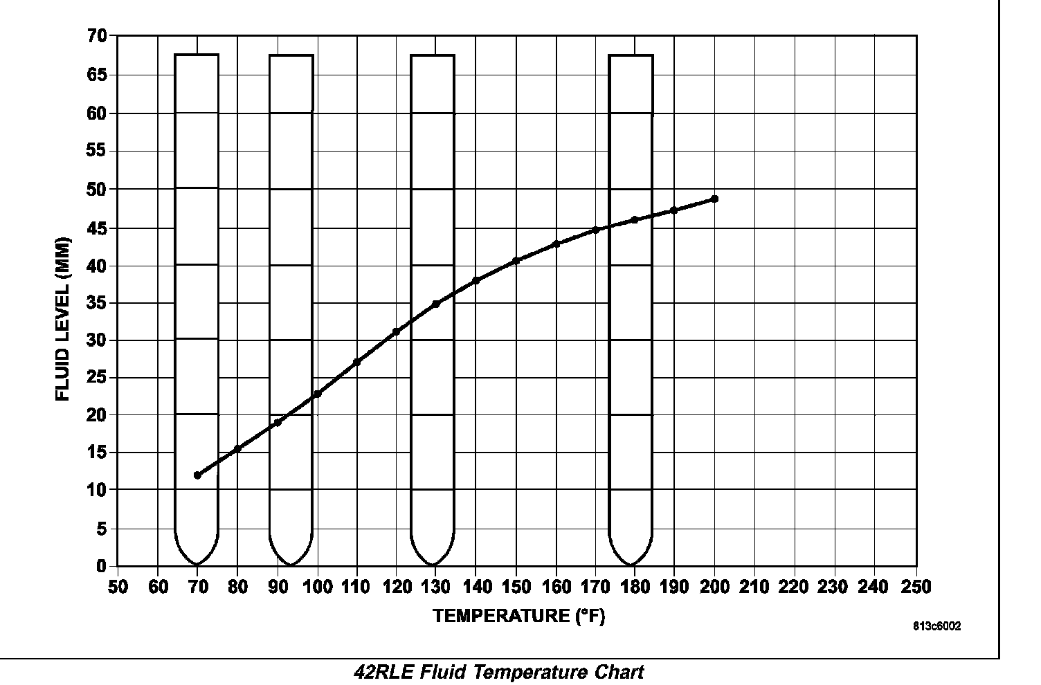 7. The transmission Oil Dipstick 9336 has indicator marks every 10mm. Determine the height of the oil level on the dipstick and using the height, the transmission temperature, and the Transmission Fluid Graph, determine if the transmission oil level is correct.