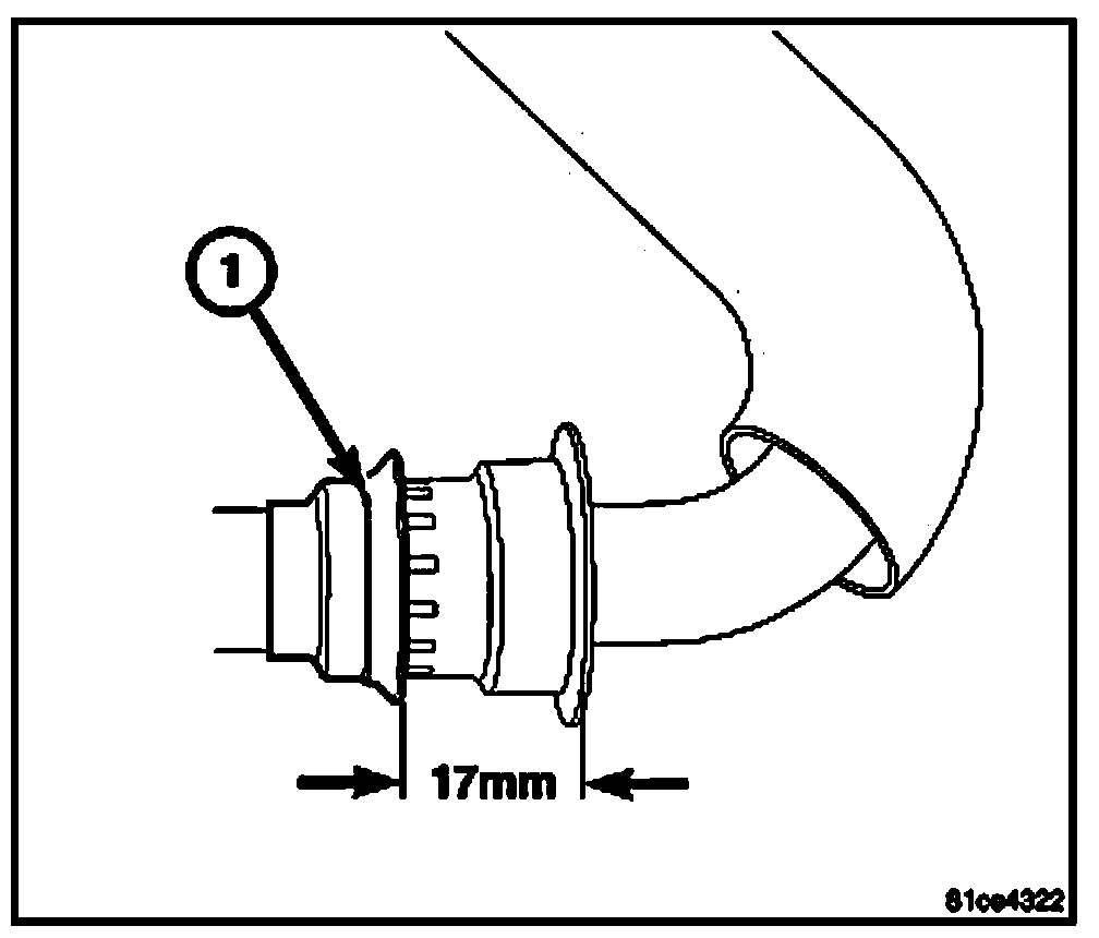 2. Install new silicone rubber seal (1) on the intake manifold end of the EGR tube. Position seal 17 mm (0.67 in.) from the tube flange.