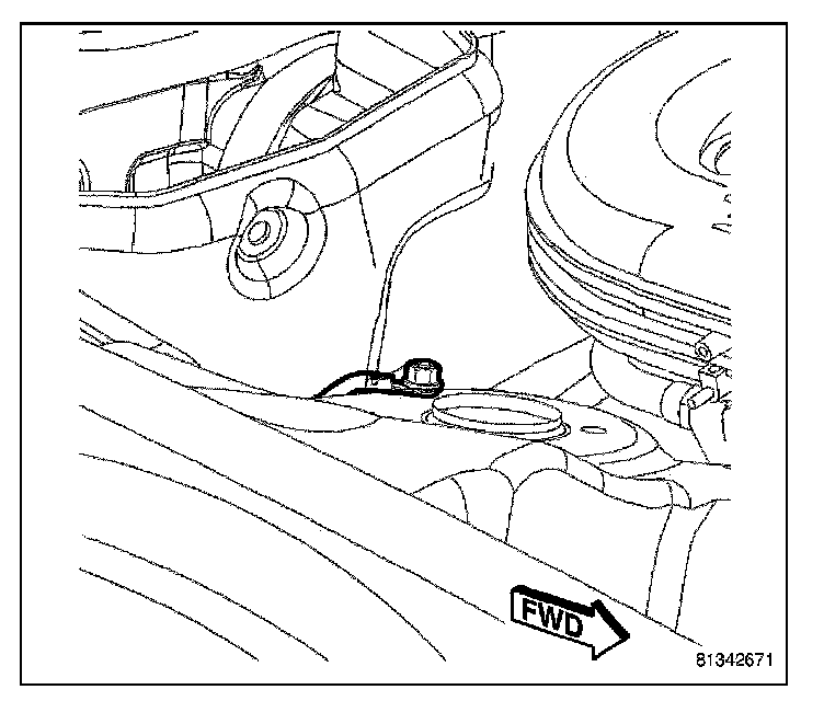 6. Install the fastener securing the battery negative cable to the right front strut tower.