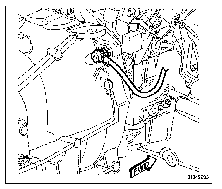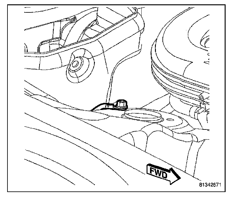 3. Install the fastener securing the battery negative cable to the transmission housing. Torque the bolt to 11 N.m (8 ft. lbs.).