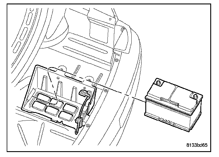 2. Remove the rear compartment floor, trim panel to gain access to the battery.