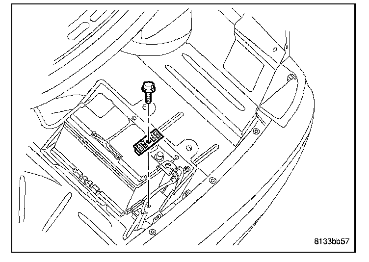 2. Install the battery hold down clamp and bolt. Torque the bolt to 4 N.m (35 in. lbs.).