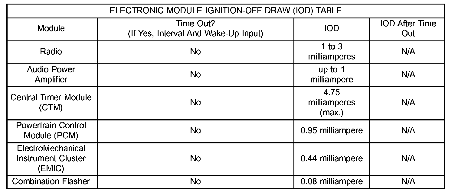 Electronic Module Ignition-Off Draw (IOD) Table: