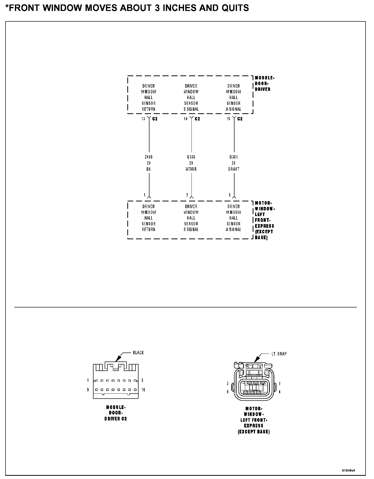 Measure the resistance of the Window Hall Sensor A Signal circuit between the Motor connector and the Module C2 connector.