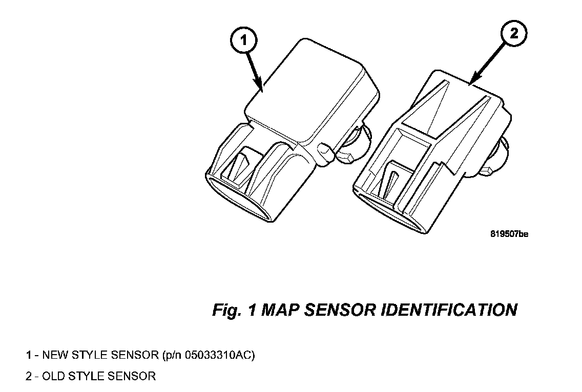 Using a Scan Tool (StarSCAN(R)) with the appropriate Diagnostic Procedures available in TechCONNECT, verify all engine systems are functioning as designed. If the any of the listed DTCs are present, inspect the MAP sensor (Fig. 1). If the MAP sensor is the new style, further diagnosis will be required. If the MAP sensor is the old style, perform the repair procedure.