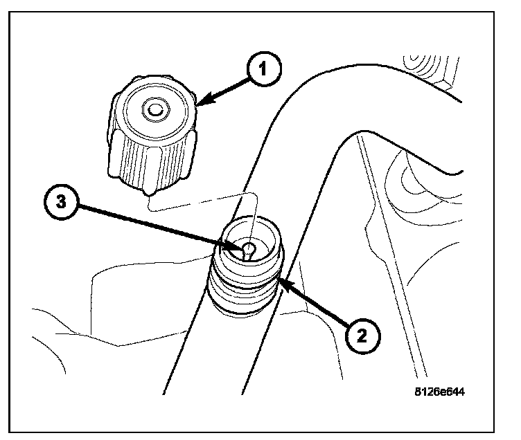 3. Using a Schrader-type valve core tool, remove the valve core (3) from the service port.