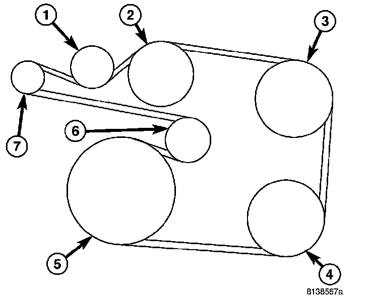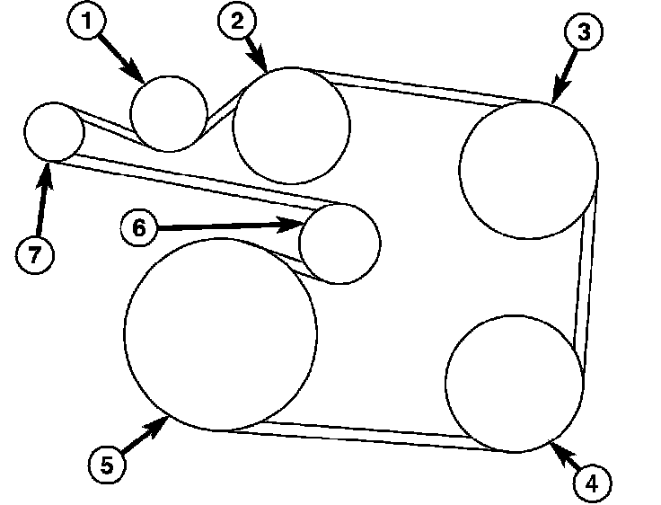 CAUTION: When installing the serpentine accessory drive belt, the belt MUST be routed correctly. If not, the engine may overheat due to the water pump rotating in the wrong direction.