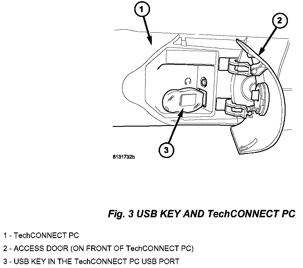 4. Insert the USB Key, into the USB port on the TechCONNECT or equivalent PC (Fig. 3).