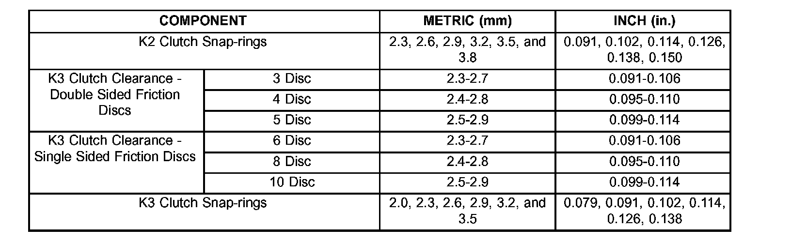 Torque Specifications: