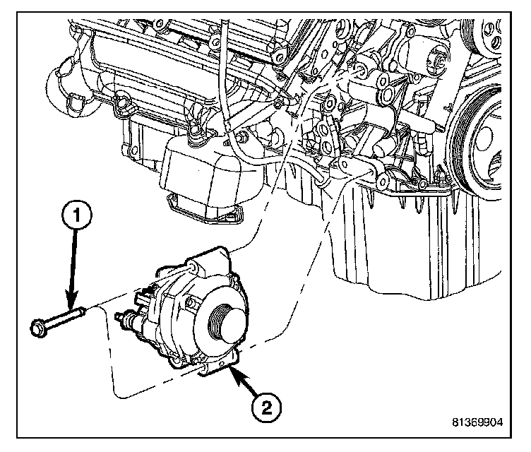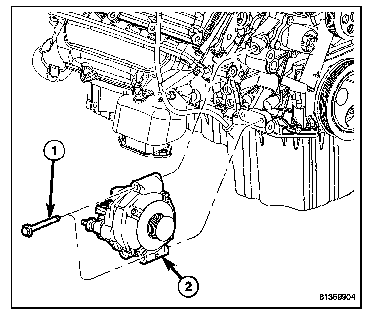 1. Position generator (2) to engine and install 2 mounting bolts (1).