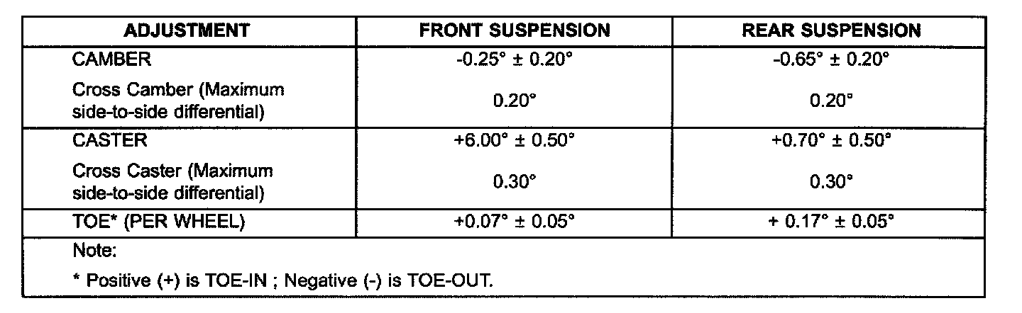 NOTE: All wheel alignments are to be set with the vehicle at DESIGN HEIGHT.