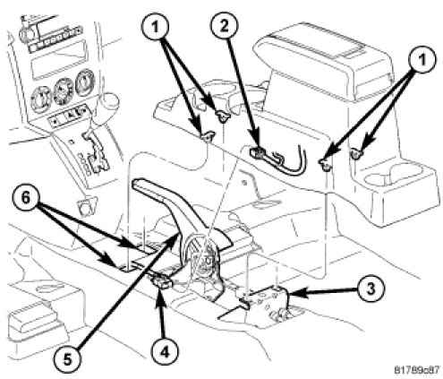 2. Insert center console over parking brake.